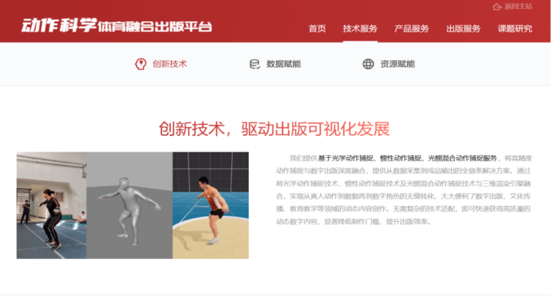 我社获奖作品聚焦体育专业出版领域的数字化转型需求,兼具创新性与实用性。“动作科学体育融合出版平台” 整合了体育动作科学前沿理论与数字出版技术,构建了集教学资源、训练方案、数字课程于一体的综合性数字出版服务平台,为体育专业教学、训练、科研提供了专业级的数字化动作出版解决方案。
